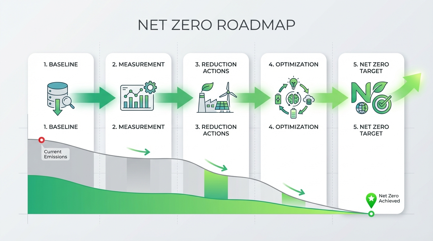 - Xây dựng lộ trìnhLập kế hoạch hành động với các mốc giảm phát thải cụ thể theo từng giai đoạn
